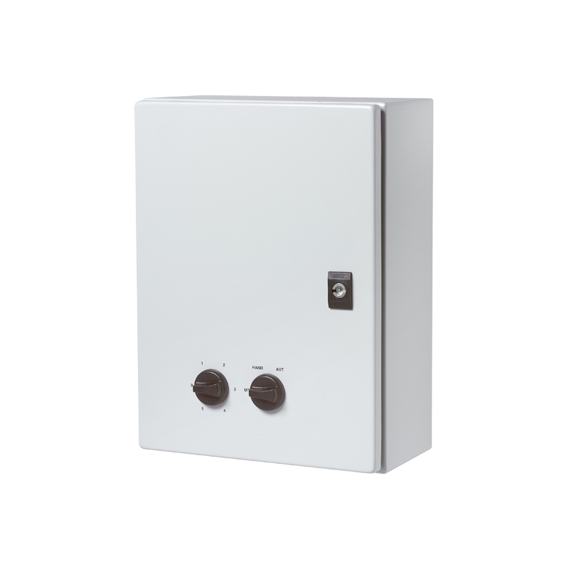 Dieser Regler ist geeignet für spannungsregelbare 3-Phasen-Motoren und kann manuell über den Schalter am Gehäuse bedient werden oder automatisch mit dem Thermostat T55 oder potenzialfreien Kontakten, wie sie beispielsweise in einer Klimaautomatik verwendet werden, geregelt werden.